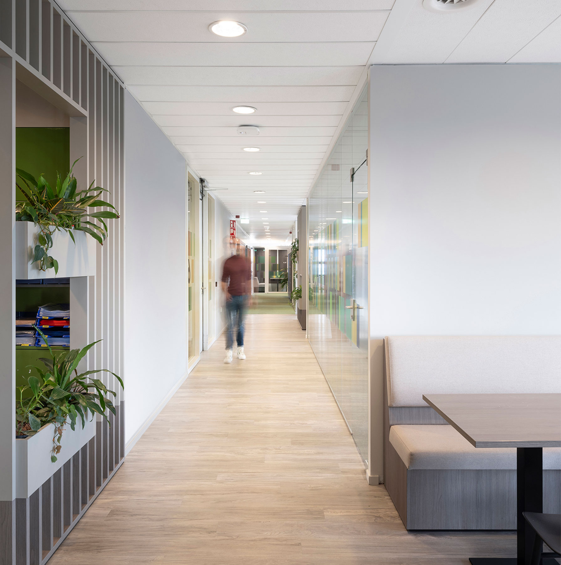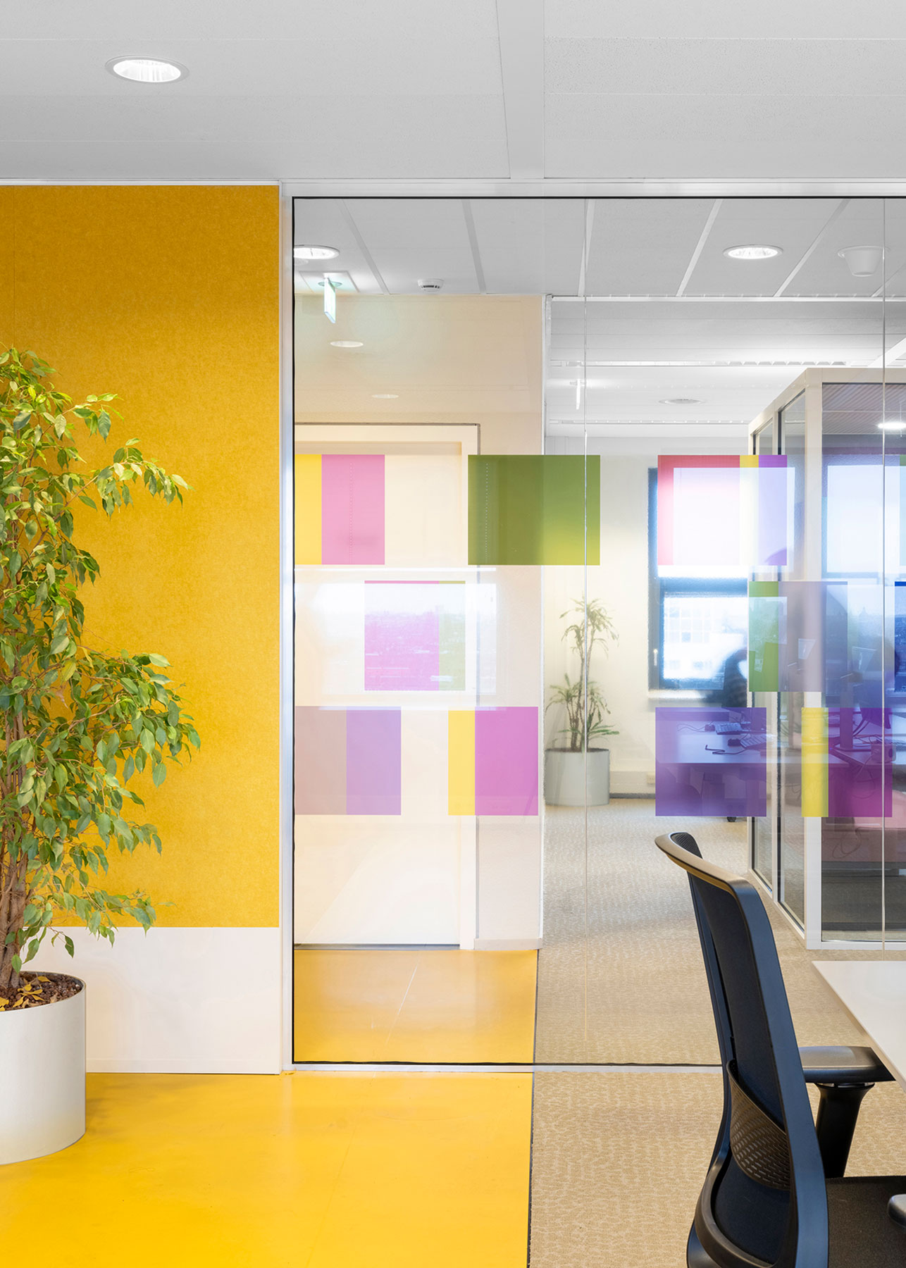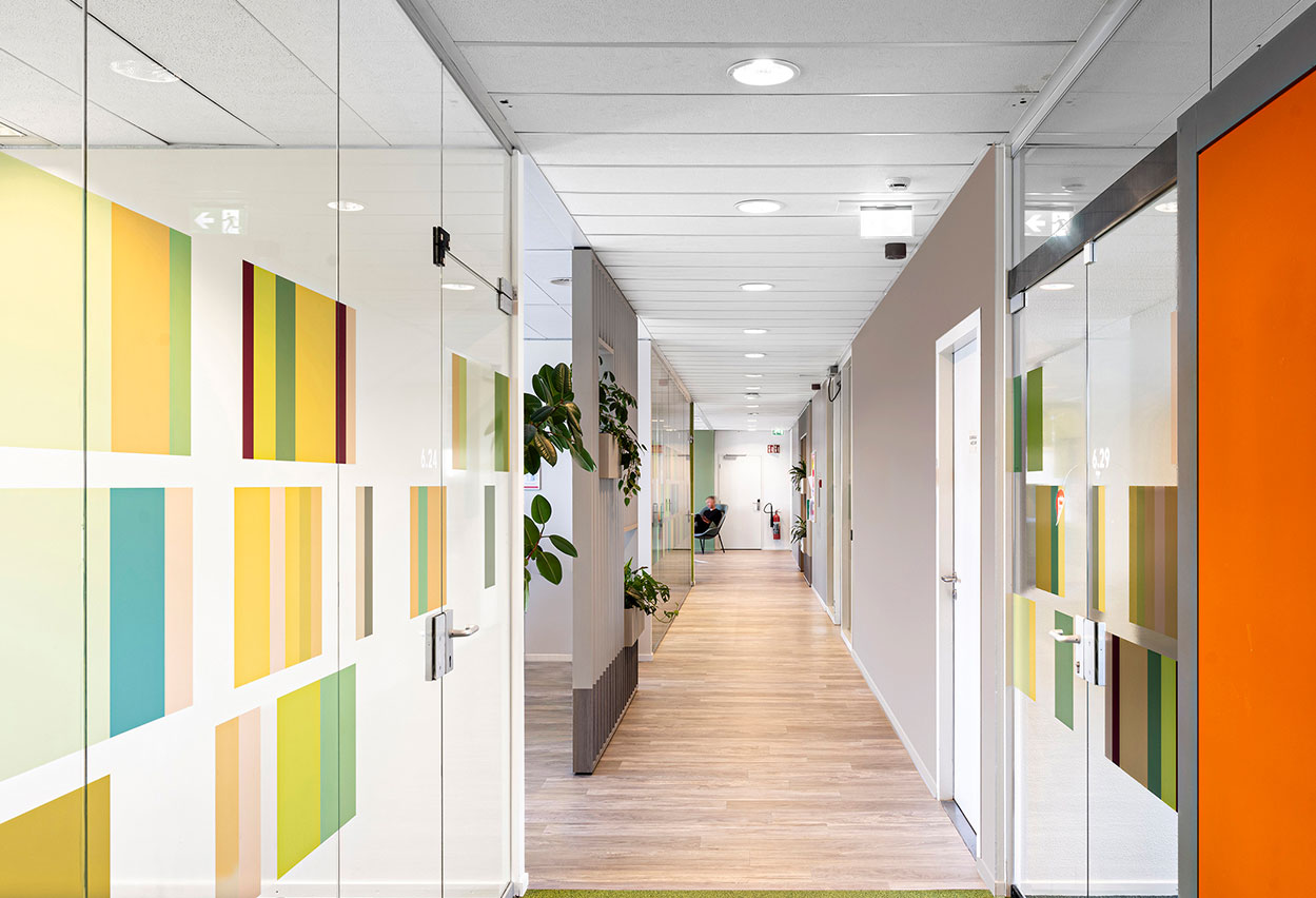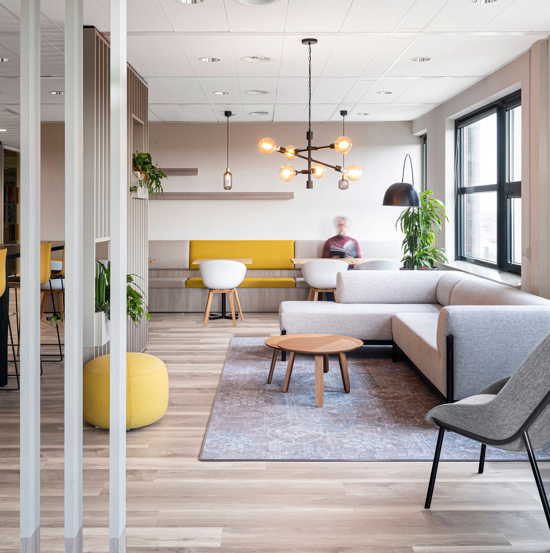Voor de gemeente Amsterdam hebben we ruim 6000m² circulair ontworpen en het kantoor omgevormd tot een hybride werkomgeving. We zijn de uitdaging aangegaan om zoveel mogelijk bestaande interieuronderdelen te behouden en/of elders her te gebruiken. De felle, contrasterende kleuren van het oude interieur zijn verzacht door neutrale tinten toe te voegen.
