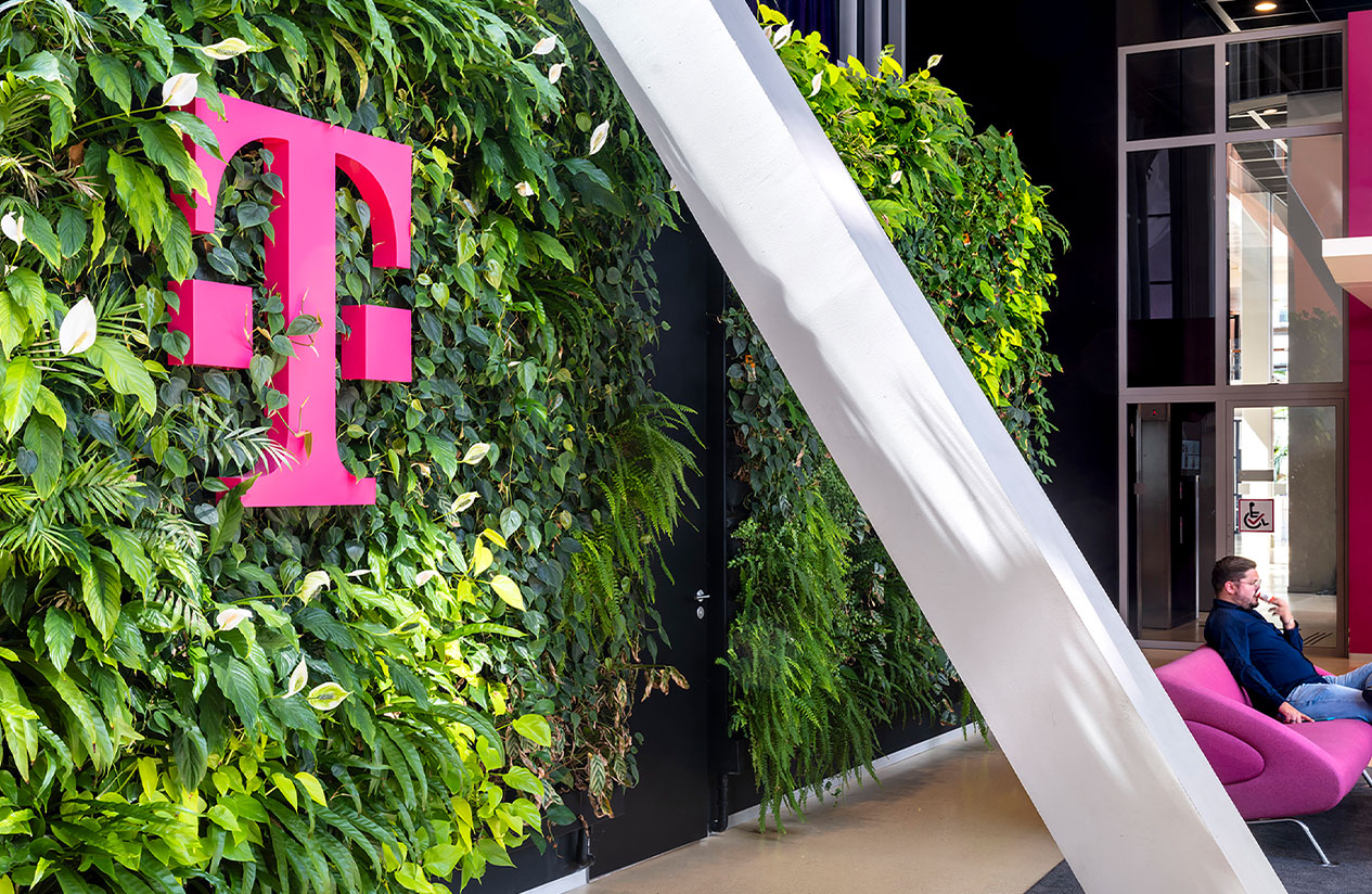 Het hoofdkantoor van T-Mobile-ODIDO was een uitdagend project vanwege de zeer strenge brandveiligheidseisen, waardoor voornamelijk interieuronderdelen van metaal en steenachtige materialen ingezet konden worden.